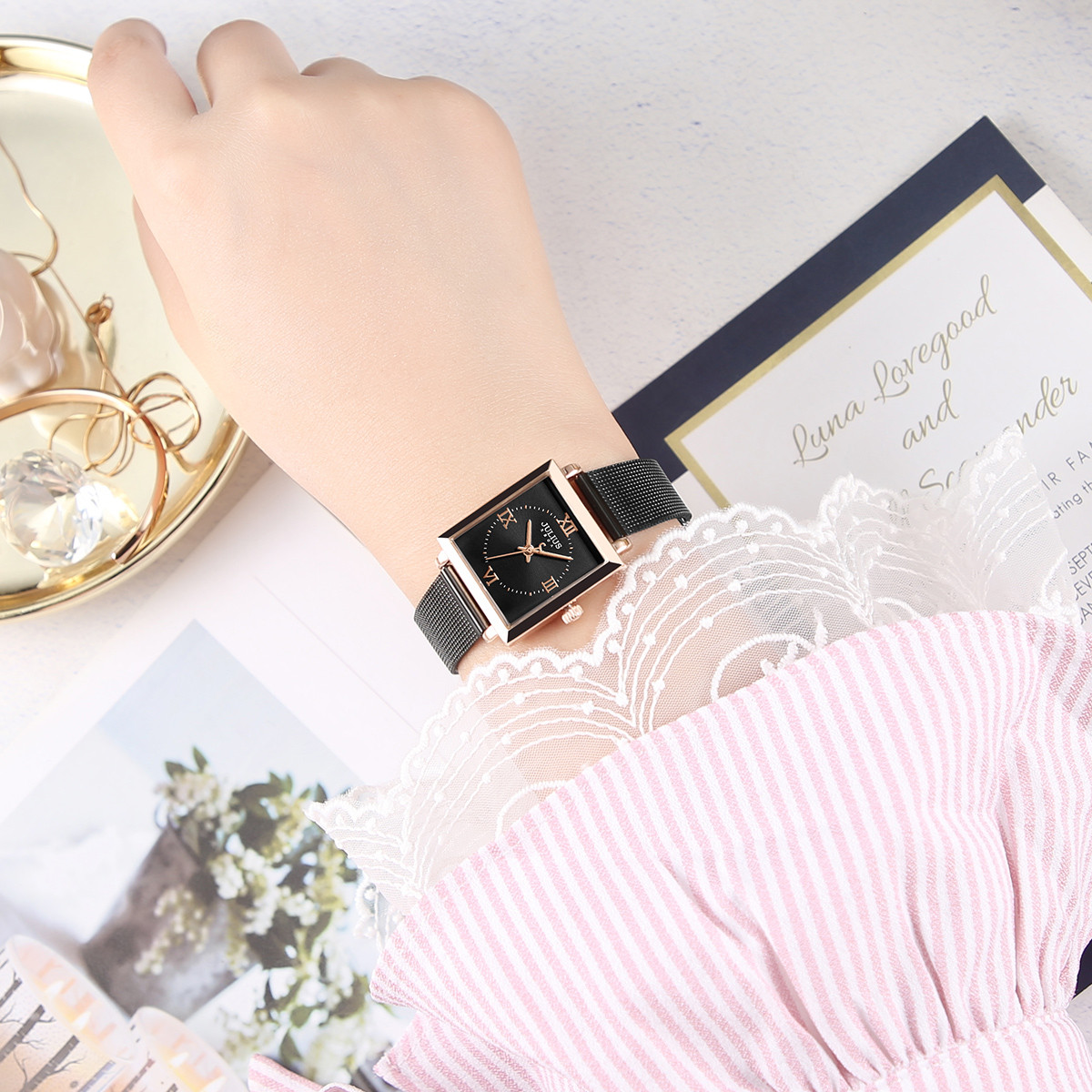 Đồng hồ nữ Julius JA-1202 dây thép mặt chữ nhật