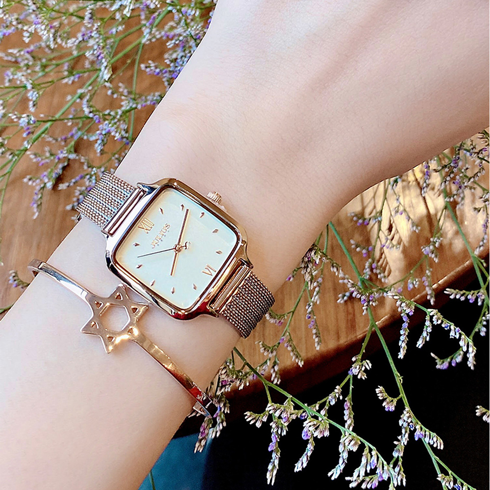 Đồng hồ nữ Julius JA-1252 dây thép mặt chữ nhật