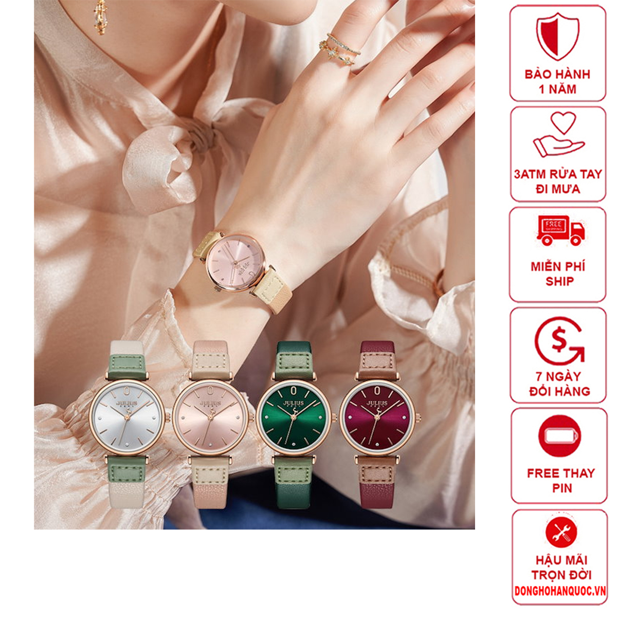 • Bảo hành máy đồng hồ Julius: 12 tháng, hậu mãi chi phí thấp sau bảo hành